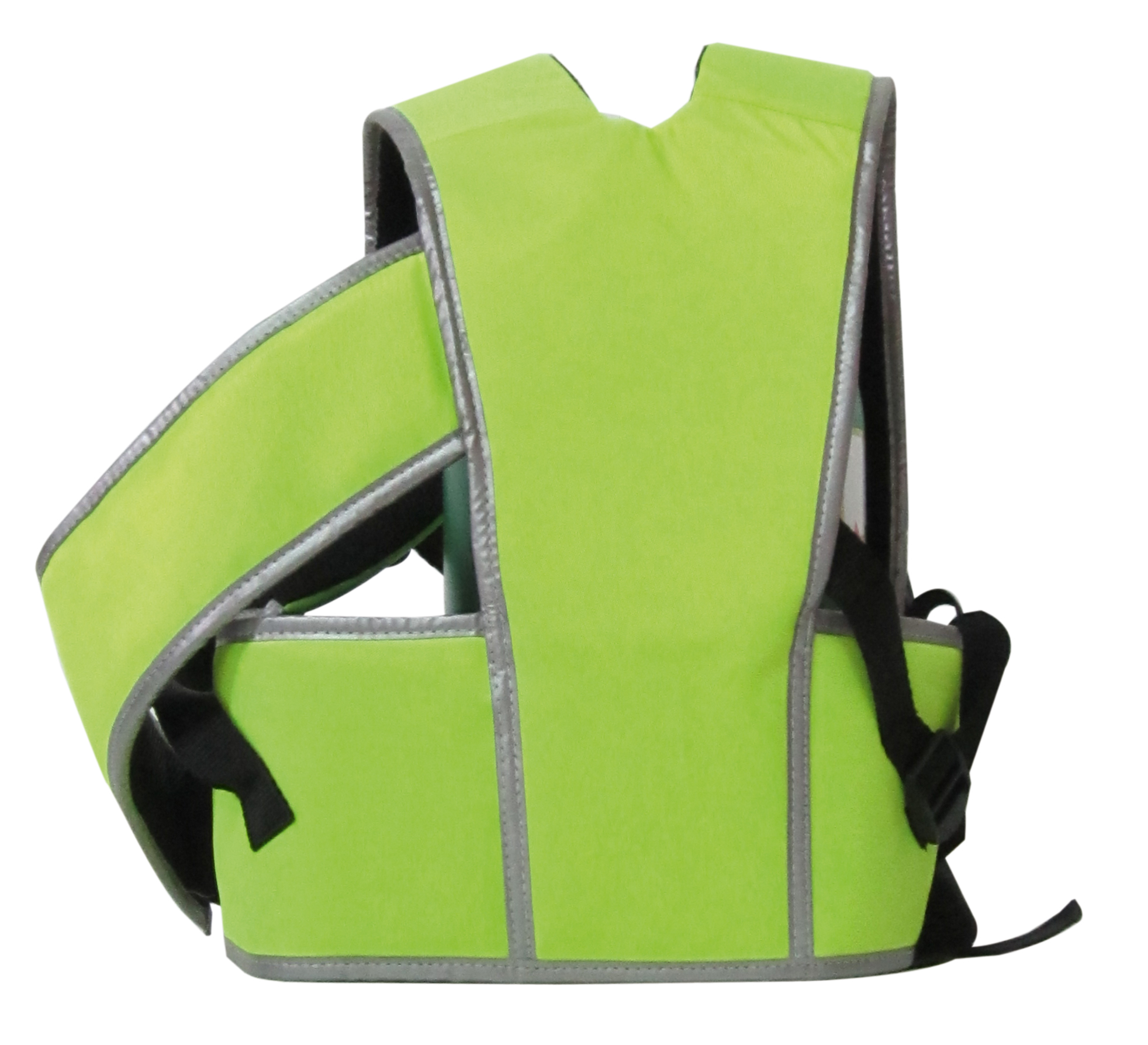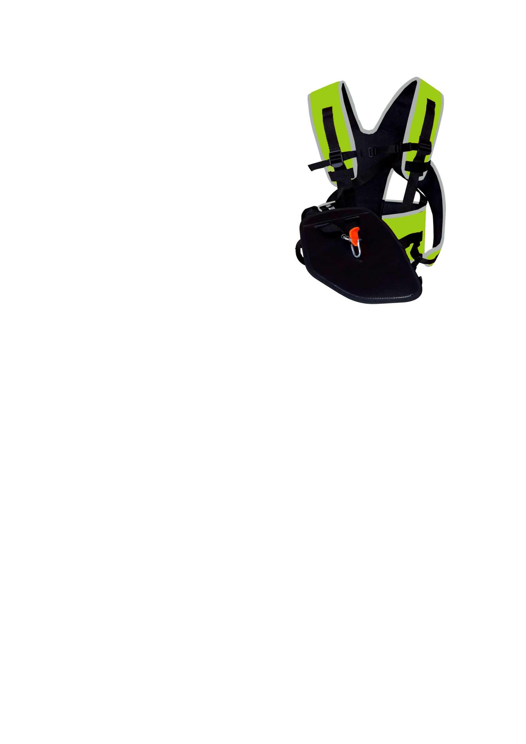 Alta visibilidad y reflectante . Arnés tipo mochila, autoajustable en hombros y cintura, que está compuesto por una almohadilla lateral con gancho para soportar el peso de la máquina y para la absorción de vibraciones.