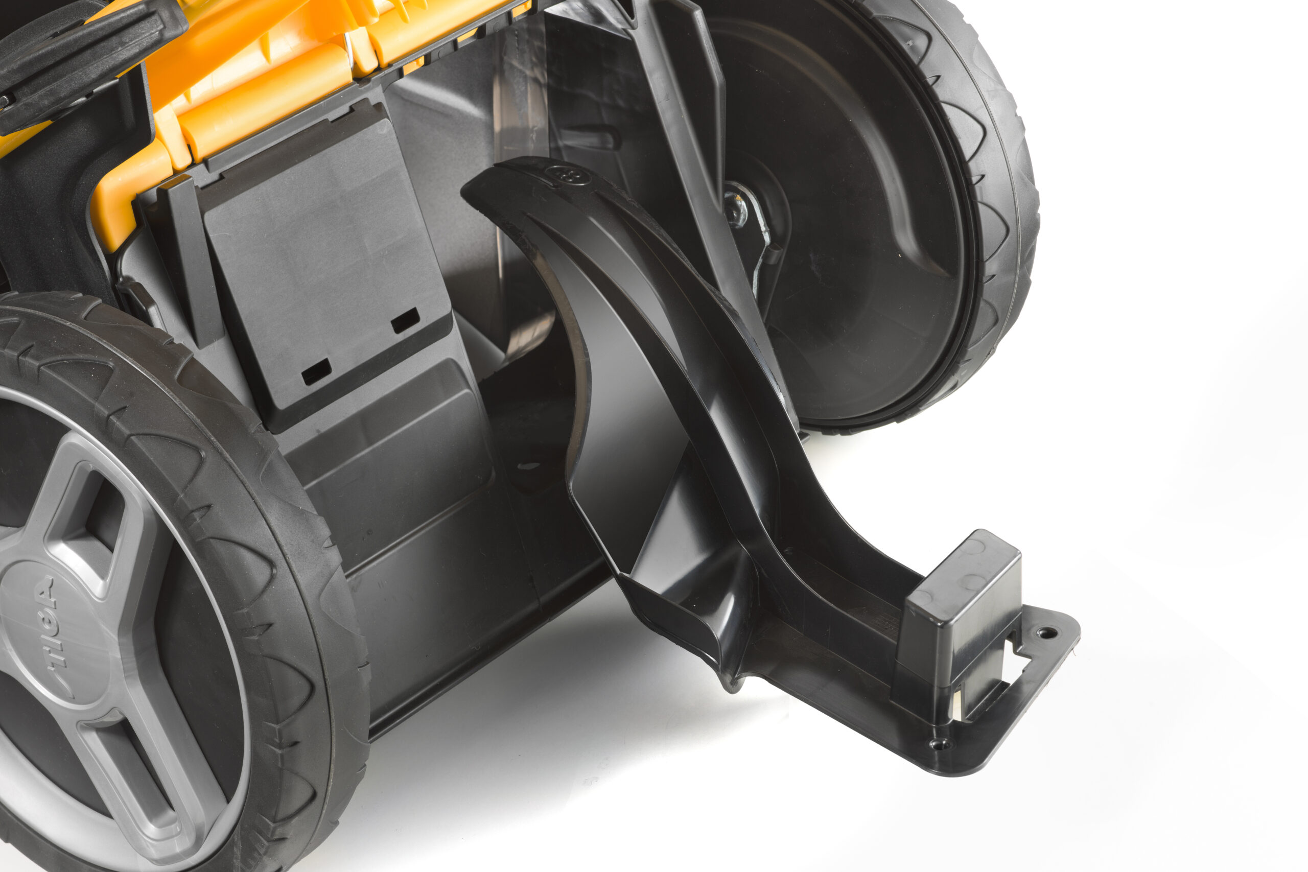 Sus ruedas delanteras tienen un diámetro de 200 mm y sus ruedas traseras , de 280 mm. El mayor tamaño de las ruedas de este modelo respecto a otros cortacéspedes similares es una ventaja porque facilita el avance , sobre todo , en jardines con gran densidad de hierba.