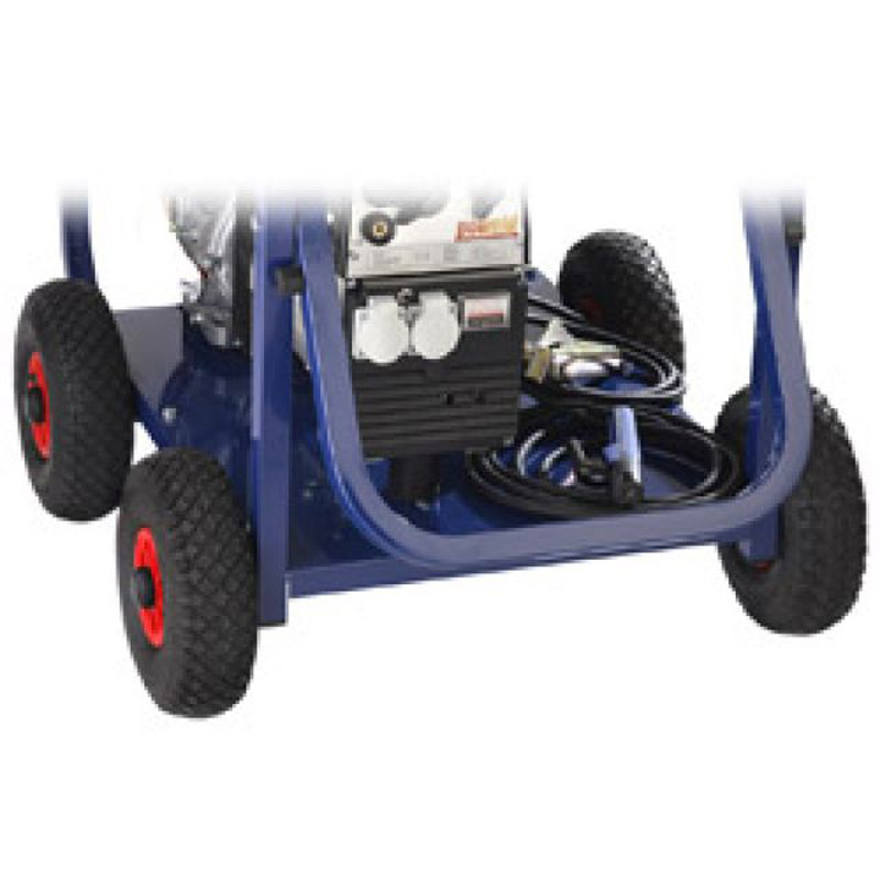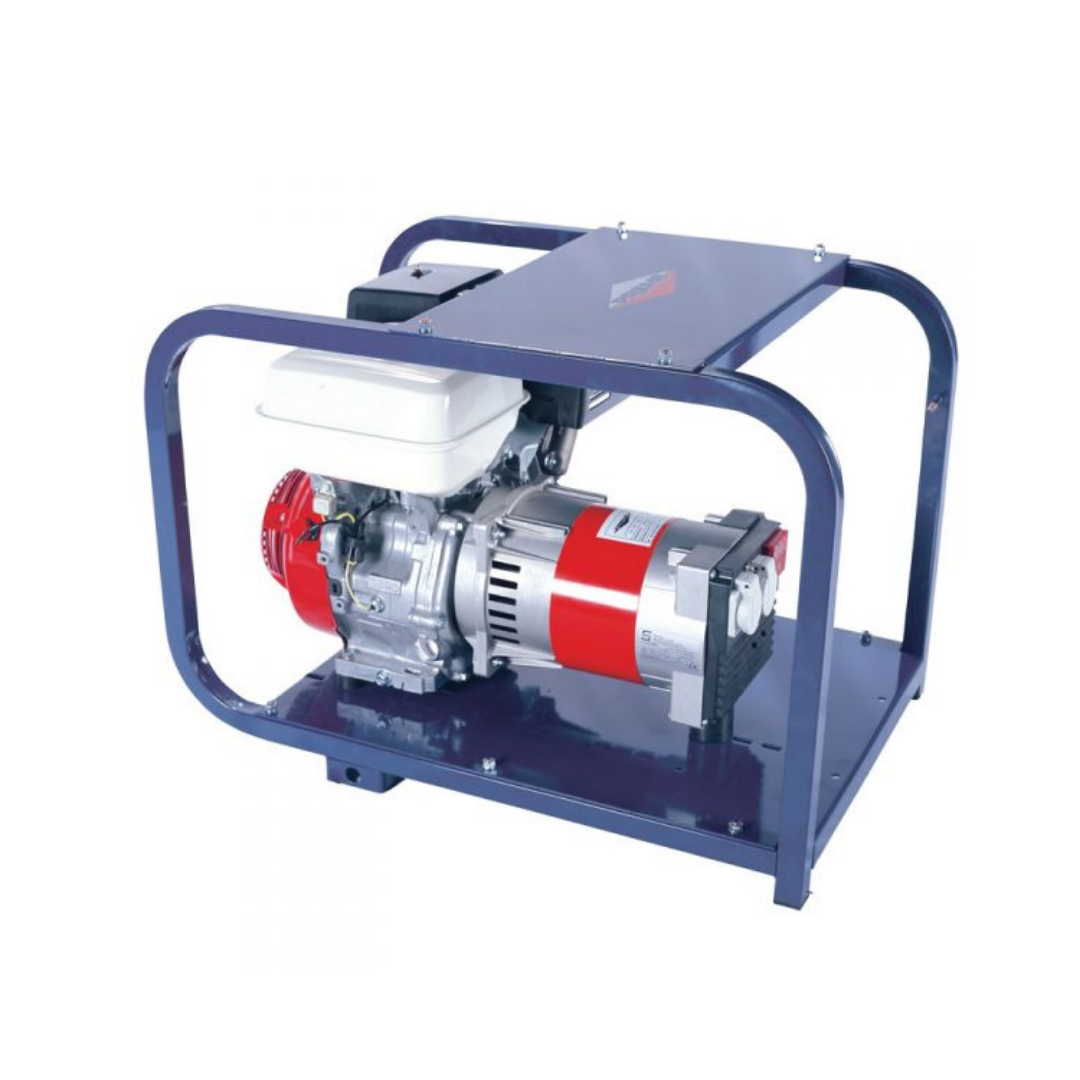 Grupo monoblock montado sobre chasis tubular con amortiguadores antivibratorios. Equipado con motor HONDA GX- 270 de 270 cc. que incorpora alerta de aceite, evitando posibles averías graves , ya que el motor deja de funcionar cuando baja el nivel de aceite .
