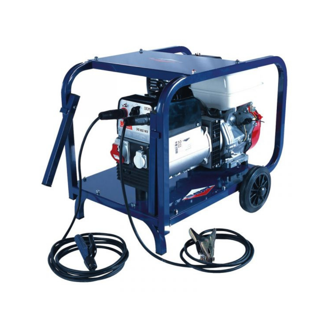 La motosoldadora PREME MH 220 MDC va montada sobre chasis tubular con amortiguadores antivibratorios. Equipada con motor HONDA GX- 390 de 390 cc. que incorpora alerta de aceite, evitando posibles averías graves , ya que el motor deja de funcionar cuando baja el nivel de aceite . Como equipo de soldar incluye de serie pinza de electrodo 400 A. con cable de 5 metros y pinza de masa con cable de 3 metros , no así la careta. Capacidad como soldadura de 220 A.