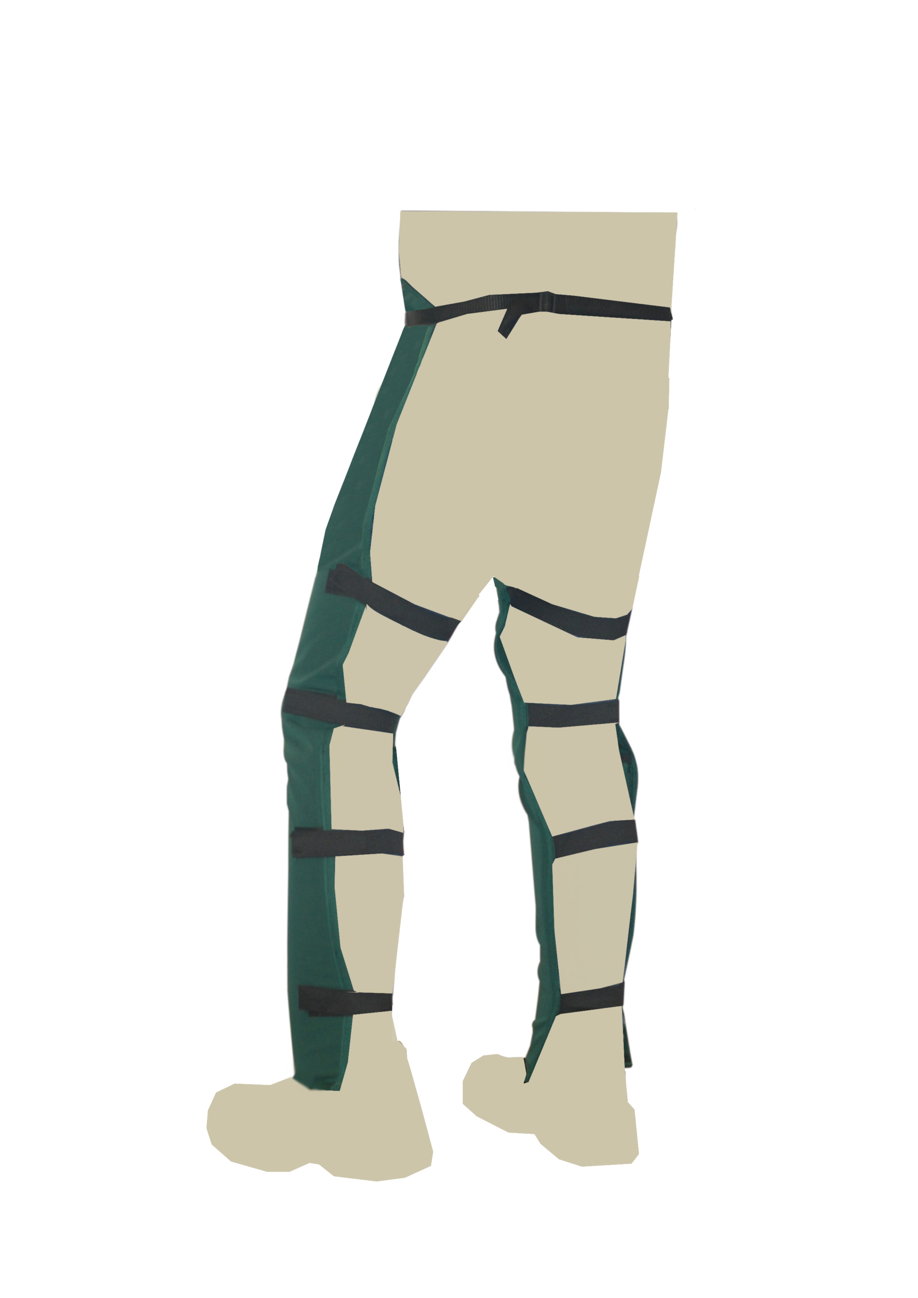La sujeción en las piernas se compone de 4 cintas ajustables con cierre de velcro.