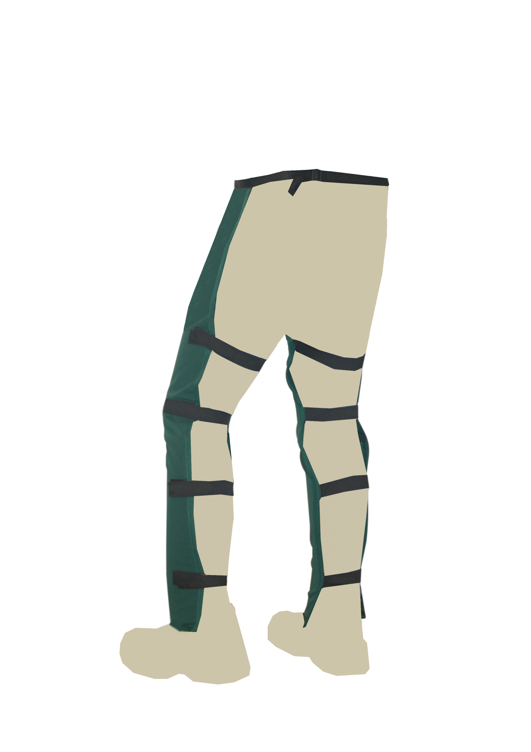 La sujeción en las piernas se compone de 4 cintas ajustables con cierre de velcro.